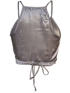 The Mila Wrap Grey Tank Top is a must-have for any fashion-forward individual. Its unique wrap top design adds a touch of elegance to your outfit, while the soft satin viscose fabric ensures maximum comfort. Made in the USA with 100% viscose (Rayon), this tank top is not only stylish but also high-quality.
